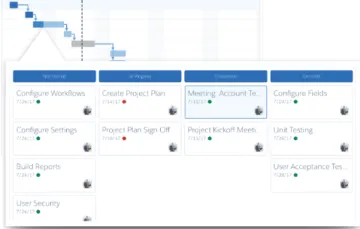 cloudcoach es una aplicación de Project Management 100% nativa de Salesforce. La aplicación fácil de usar le permite crear proyectos de cualquier tamaño o complejidad de forma rápida y sencilla, y nuestro seguimiento integral de las dependencias de tareas del proyecto le permite ajustar su proyecto de manera eficiente en respuesta a problemas imprevistos.