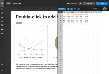 Infogram Software de Visualización de Datos integra más de 35 gráficos interactivos y más de 550 mapas para ayudarlo a visualizar datos, incluidos gráficos circulares, gráficos de barras, tablas de columnas y nubes de palabras.