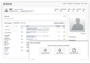 Socrata Open Data Portal: El Portal de datos abiertos de Socrata ofrece a los ciudadanos una forma de acceder y usar información pública en lugar de pasar por un proceso formal para solicitar información que puedan ver, comparar, visualizar y analizar datos en tiempo real.