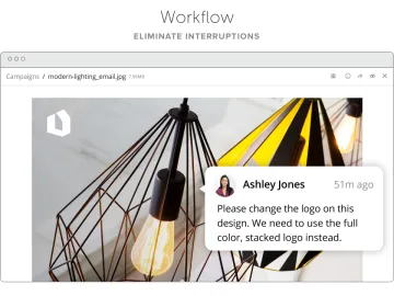 Acelere las revisiones usando el zoom de la imagen para mapear los comentarios hasta en los detalles más pequeños. Con Workstream, puede marcar cualquier tipo de archivo, incluso video, dejando comentarios claros y procesables que eliminen la confusión del proceso de revisión de la administración del proyecto. Y compare las versiones una al lado de la otra para una historia visual de los cambios.