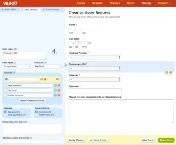 Las funciones intuitivas de Wufoo, como nuestro generador de formularios drag and drop,cree y envíe hermosos formularios web sin necesidad de codificación.Use plantillas sensibles a los dispositivos elija entre más de 400 plantillas de formularios en línea personalizables.